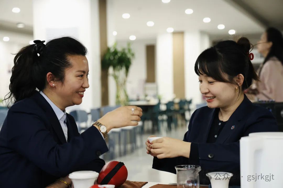 集团组织兰内100余名女职工齐聚集团2楼大厅,在国家级茶艺师的指导下开启茶文化之旅。活动现场,茶艺师以《茶经》典故为引,铺展开一片东方树叶穿越千年的文化长卷。从唐宋煎茶、明清瀹饮的流变,到绿茶清逸、红茶醇厚的风骨;从茶马古道的历史回响,到“和敬清寂”的禅意哲思,女职工们循着茶香触摸中华文明的脉络。随着古琴声起,茶艺师手执茶筅,在茶盏中匀速击拂,点茶的雪沫渐浮盏面;转而捧起三才盖碗,以太极回旋手法倾注茶汤,看银针白毫在杯中云卷云舒。通过沉浸式体验教学,大家认真练习“温具、置茶、冲泡、分茶”等泡茶顺序和手法,丝毫不敢懈怠,100余套青瓷茶具泠泠作响,女职工们或凝神观摩茶汤色泽,或结对切磋注水力度,氤氲茶烟中流淌着对传统文化艺术的敬仰。