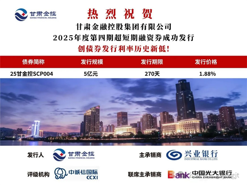 2025年6月26日,多宝网页版成功发行2025年度第四期超短期融资券“25甘金控SCP004”,规模5亿元,期限270日,票面利率1.88%,创集团债券发行利率历史新低,有助于集团降低融资成本。