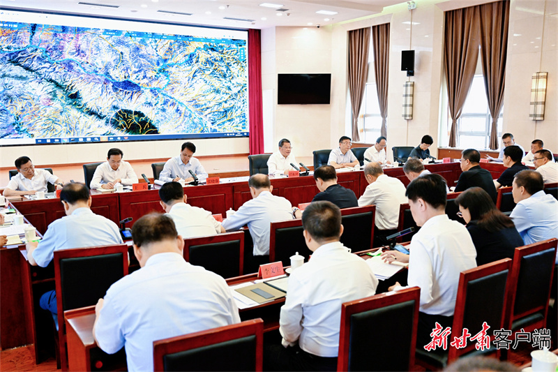 8月11日,省委副书记、省长任振鹤在省自然资源厅主持召开省政府专题办公会。(新甘肃·甘肃日报记者盛学卿)