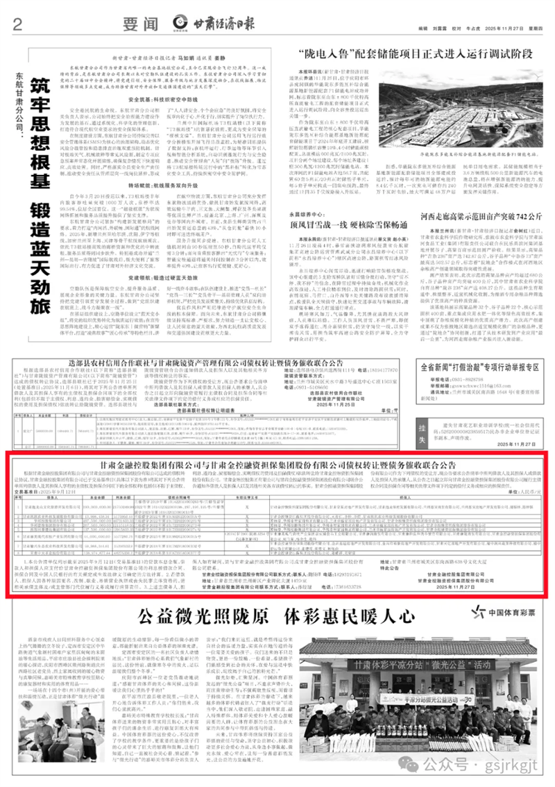 多宝网页版与甘肃金控融资担保集团股份有限公司债权转让暨债务催收联合公告